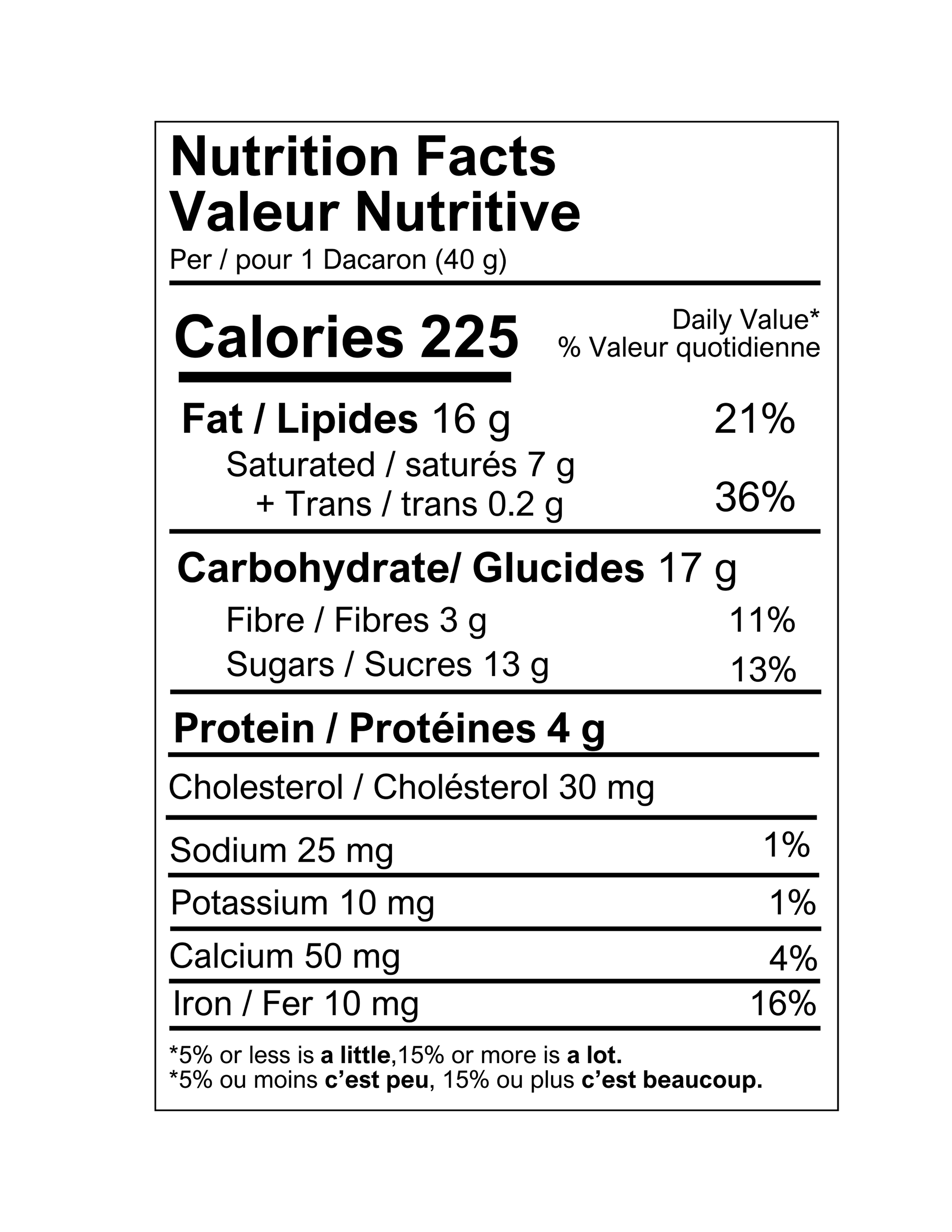 - If stored for more than 5 days, we recommend keeping Dacaron™ in the freezer below 18 degrees celsius, covered and away from the freezer door for optimal freshness. Once defrosted the cookies are just as fresh as right made.